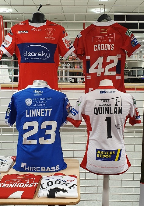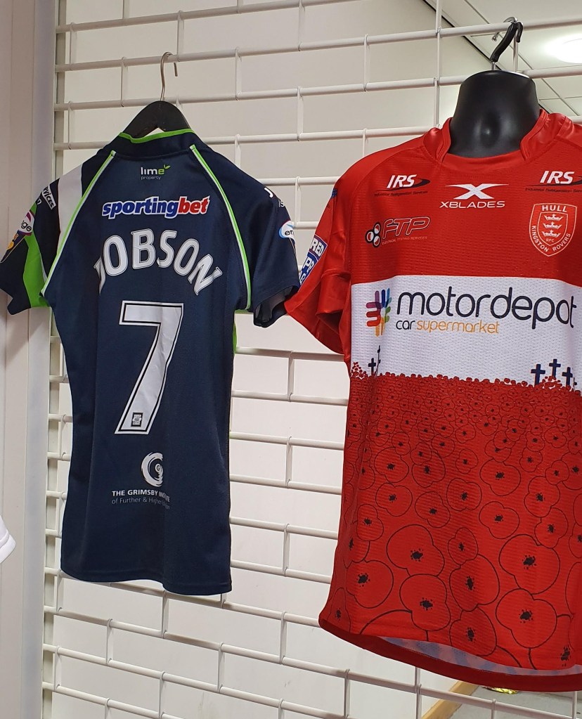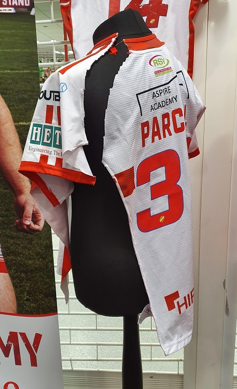 Shirts on display ranged from 1989 to 2019 but also included a 1986 adidas Wembley jacket. The club also had Matt Parcell’s shirt from the away game at Leeds when a Man of the Match performance ended abruptly with a shoulder injury. The shirt itself had to be cut from Parcell’s back to get him out of it, and it can be seen on a mannequin in the above photos.