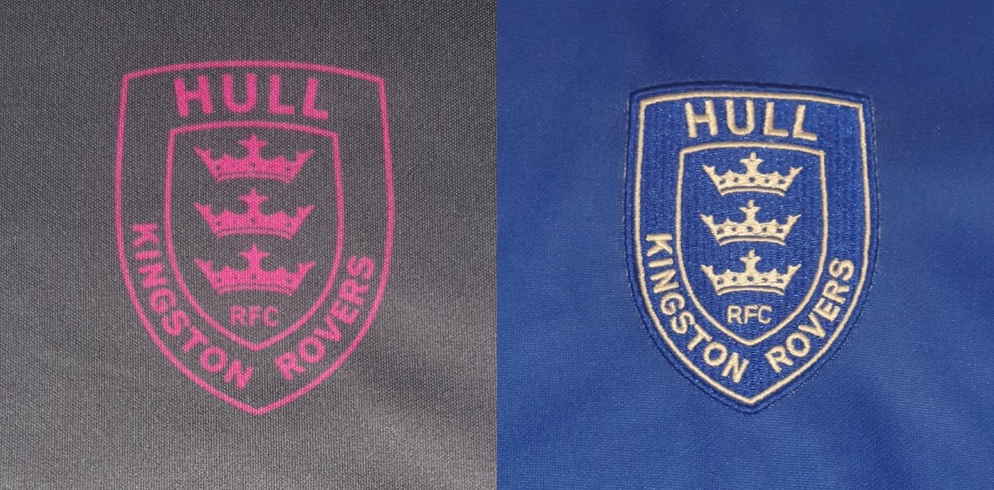 The neckline on the away shirt has been seen before on a Hull KR shirt, most recently on our 2019 home and poppy shirts. The finish looks a lot nicer than the other style we use, which is on our 2020 home and 2019 away shirts most recently. The style used on the home shirt always leaves a bunch of fabric below on almost every shirt produced. You can see this in the image below.