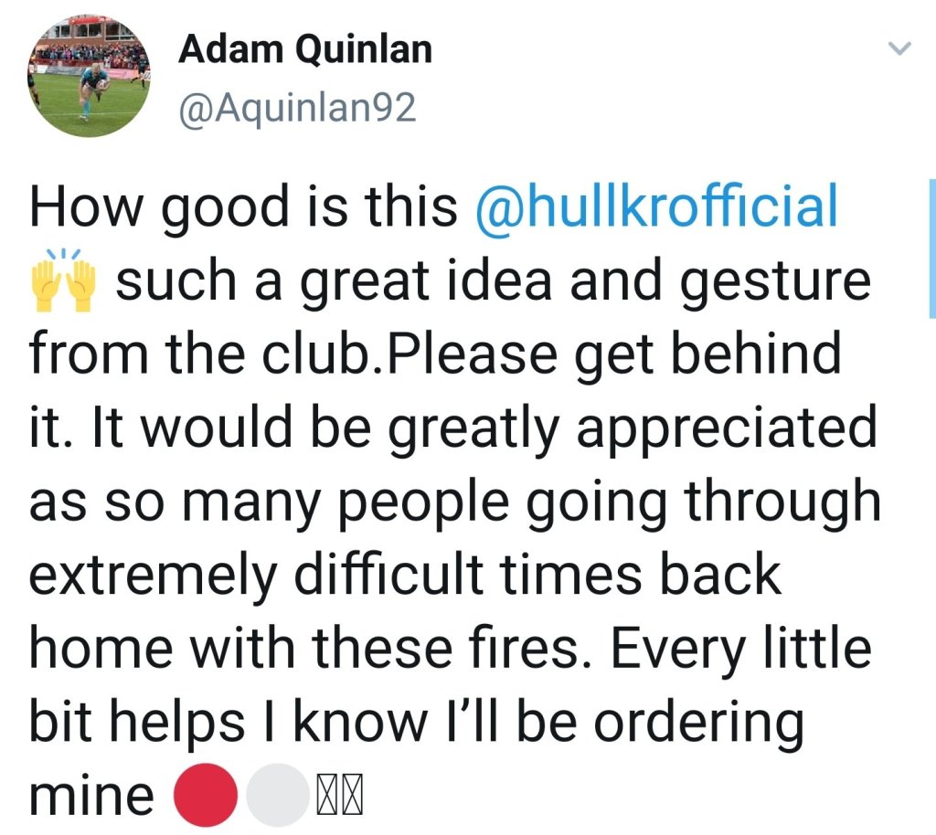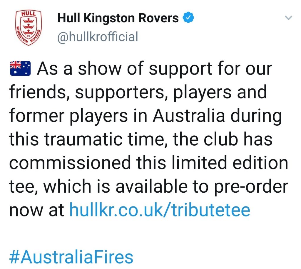 On Tuesday 7th January, Hull Kingston Rovers revealed a specially commissioned tribute tee, with-proceeds made going towards support for those affected by the awful bushfires currently engulfing Australia.