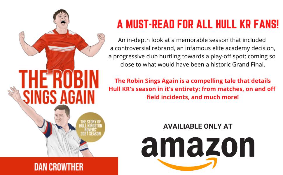 I recently purchased a copy of The Robin Sings Again which was written by life-long Hull KR fan, Dan Crowther. The book is centred around the Robins 2021 season focussing on both the on-field and off-field progress made by Hull KR. Crowther starts by reminding us of the history of the club, as we approach our 140th anniversary it is important to remember what came before us. Crowther is a keen historian and this shows in the prologue. During the prologue, Crowther uses historical tie-ins to Great Britain and Hull. I wasn’t aware of a lot of these and I certainly learned something here. It’s this kind of detail that can sometimes go unnoticed in any type of publication, but it really shouldn’t.