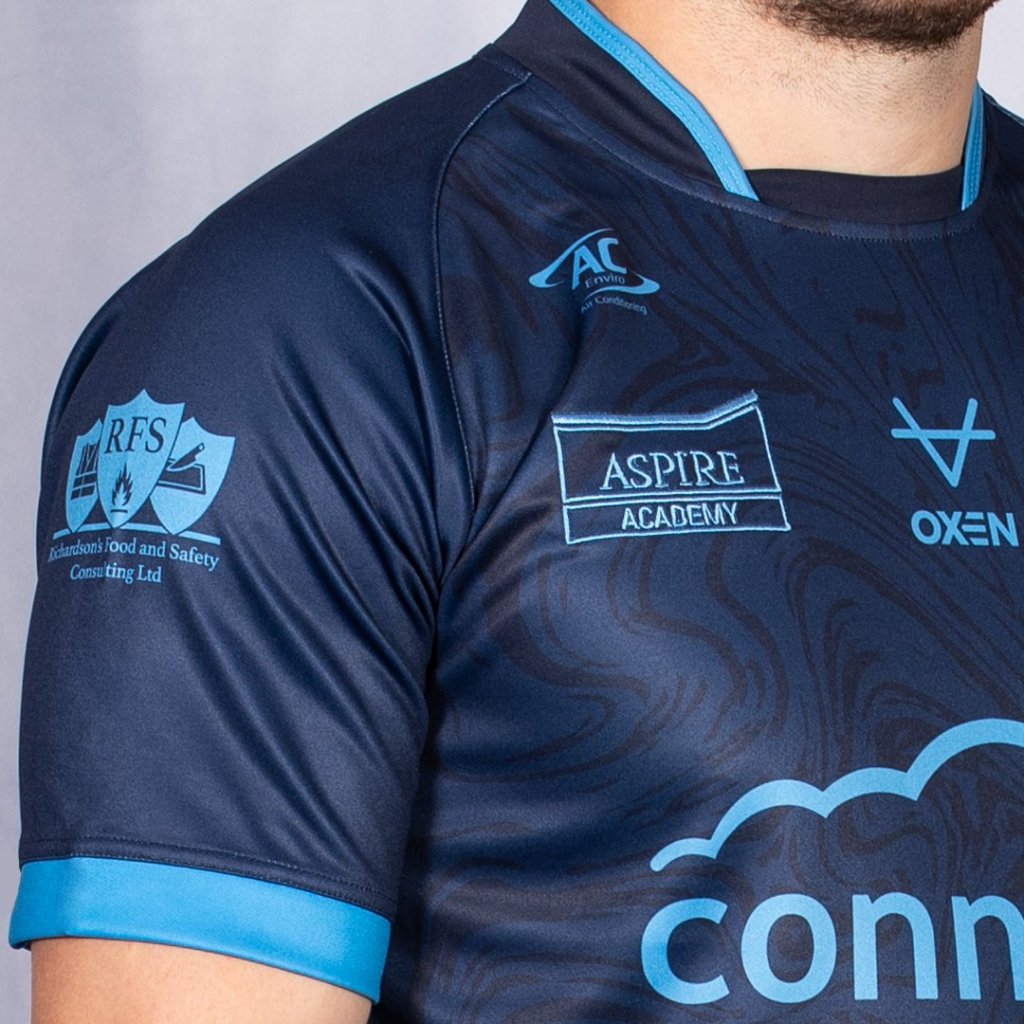 Both Richardson’s Food and Safety Consulting Ltd and the University of Hull both feature again as sleeve sponsors. RFS has moved from the left sleeve to the right, and UoH has moved up slightly but remains on the left sleeve. I suspect we shall see a heat applied sponsor logo in the space under the UoH logo on the playing shirts for the 2024 season.