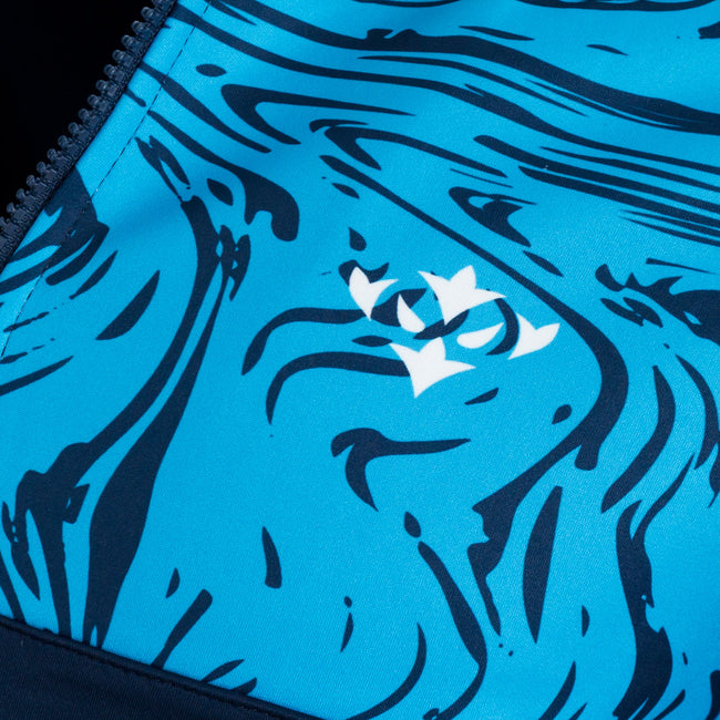 The players’ range is predominantly navy, with ocean blue chest detailing throughout. The detail is based on the marble effect that inspired the 2024 marble alternate kit. The detailing on the training wear is much more in your face than the subtle approach taken with the playing kit for the 2024 season.