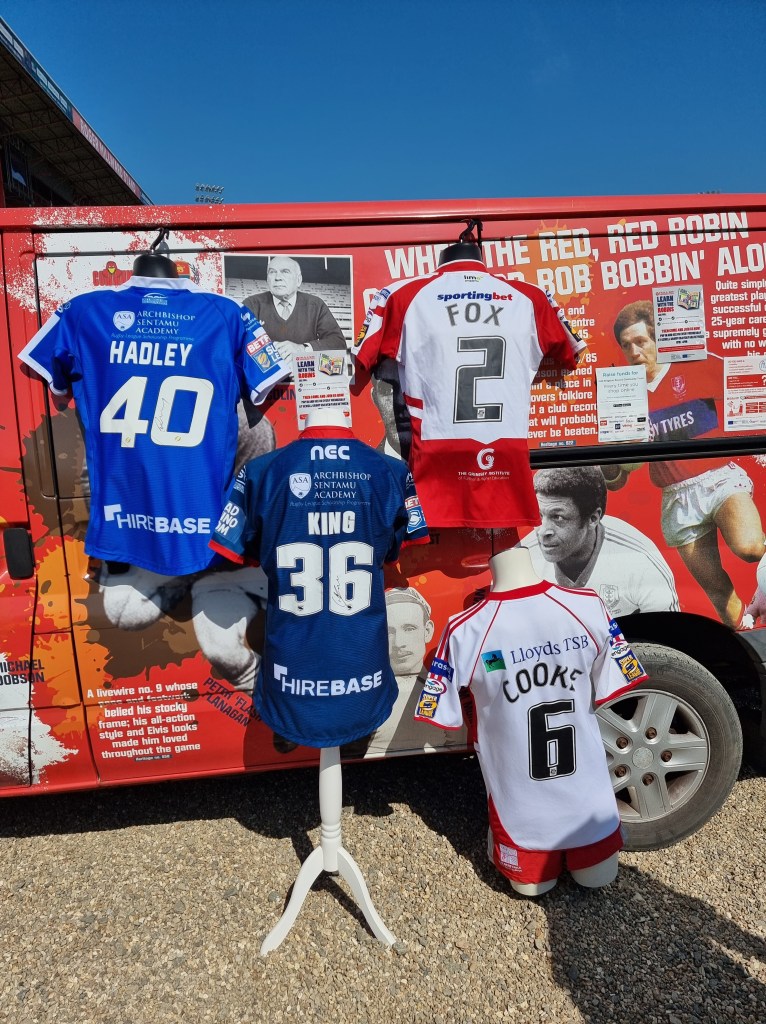We started up with our displays with the Community Trusts Heritage Van in 2021. I had the opportunity to partner up two of my roles with a matchday exhibition. The gallery above covers the early stages of Hull KR Shirts‘ displays on Craven Streat, which featured one of Dean Hadley’s 2021 home shirts. The shirt was cut off Dean after a shoulder injury against Wakefield on 26th August.
