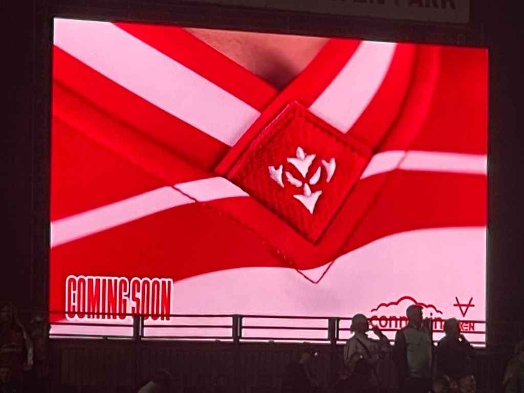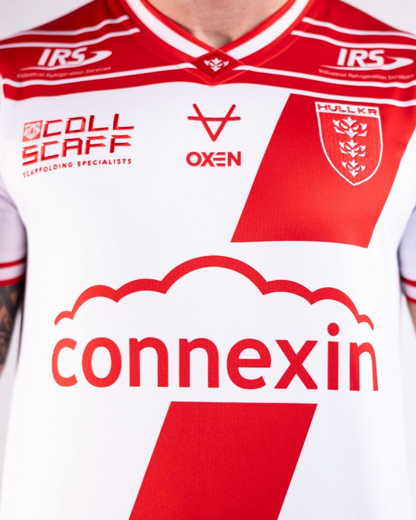 Our next teaser was provided to us by principal kit partner Connexin. On Saturday morning, they updated their profile picture on their social media channels to a white graphic with their Connexin branding appearing in red, with a broken-sash styled band, travelling from the top bottom left to the top right, or the other way around if you prefer. A clear hint that the 2025 Hull KR home shirt was going to feature a sash…