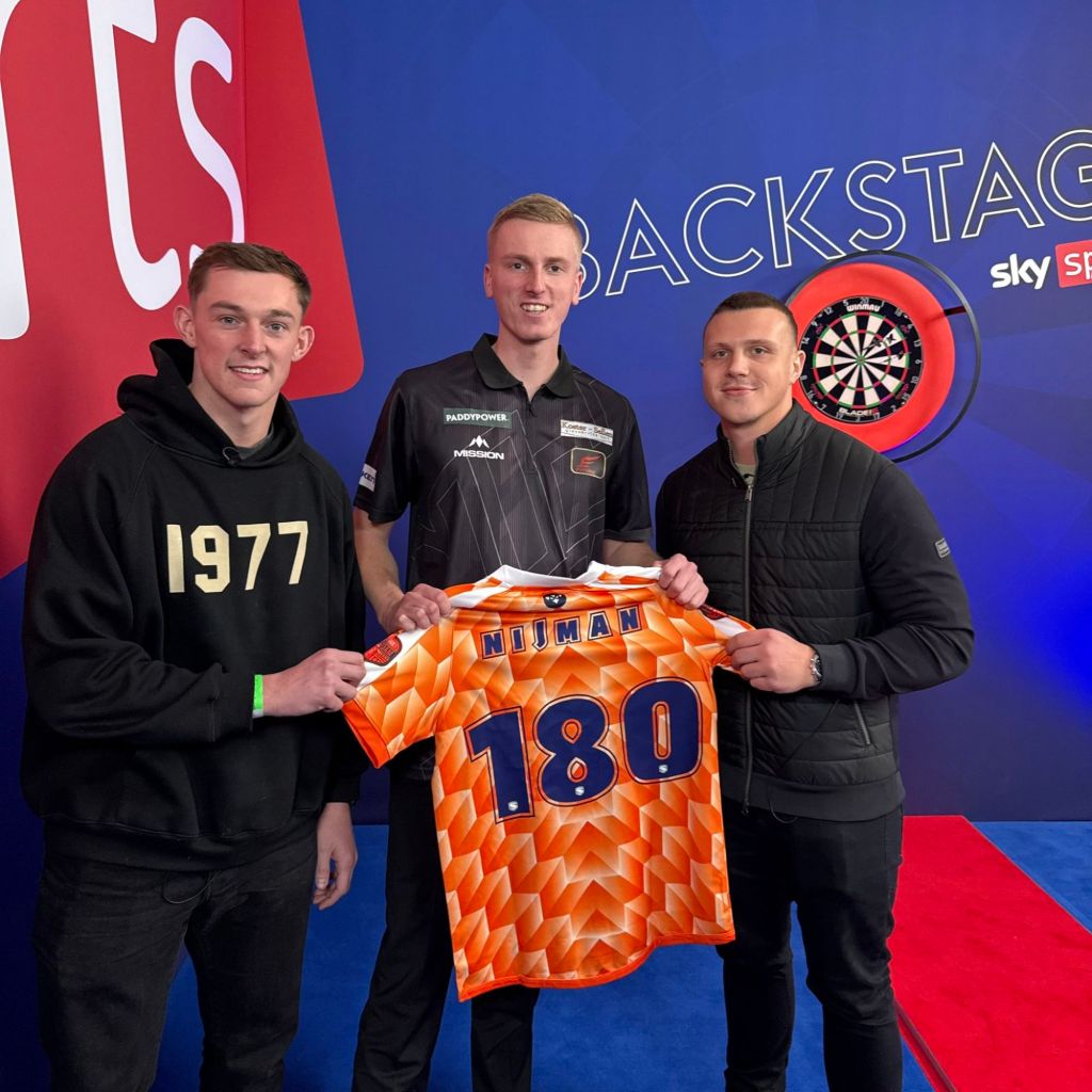 During the 2024 PDC World Darts Championship, Jack’s Broadbent and Brown had the pleasure of appearing at Alexandra Palace to meet up with Dutch darts player Wessel Nijman and present him with a warm-up shirt, that had been personalised with Nijman and 180 on the reverse. An excellent touch from the Robins as well as a wonderful marketing stroke ahead of the first ever RugbyLeague.com Amsterdam Challenge! I guess we’d run out of ‘small’ J’s!