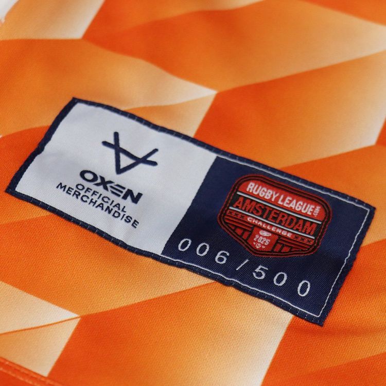 The geometric chevron-based short sleeved warm-up shirts have the same build of that of a replica shirt produced by OXEN, so naturally it features the premium qualities that you’d an expect, including embroidered club and NRLB crest. Sadly, we didn’t get the v-neck collar that featured on the 1988 Netherlands shirt. Instead, it has the usual cut-out collar finish that features across the two 2025 alternate replica shirts.