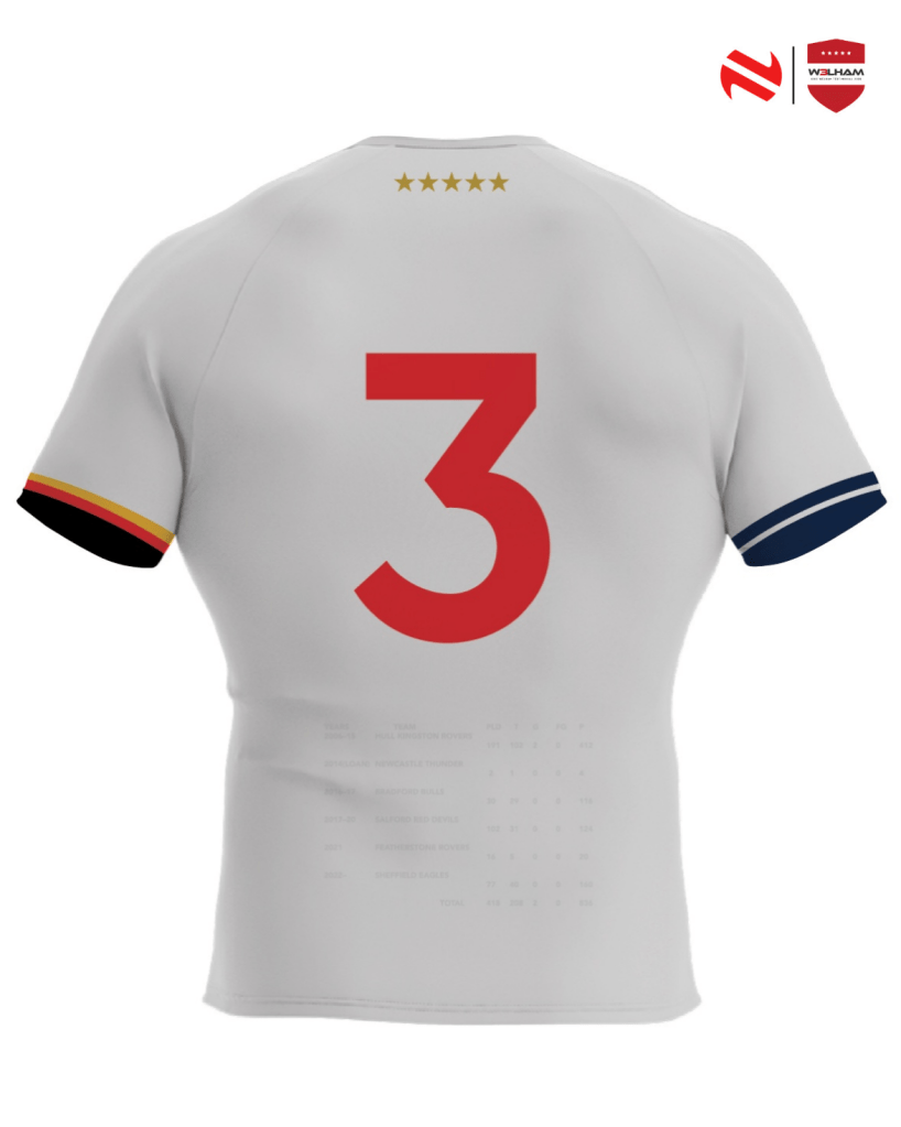 Composing part of Kris Welham’s celebrations, the design of the testimonial shirt has been revealed. The shirt has been manufactured by O’Neills, the Irish sports brand that also produces shirts for St Helens and Warrington in the Super League. It should be noted that the design is subject to change with the addition of a main front of shirt sponsor to be potentially added.