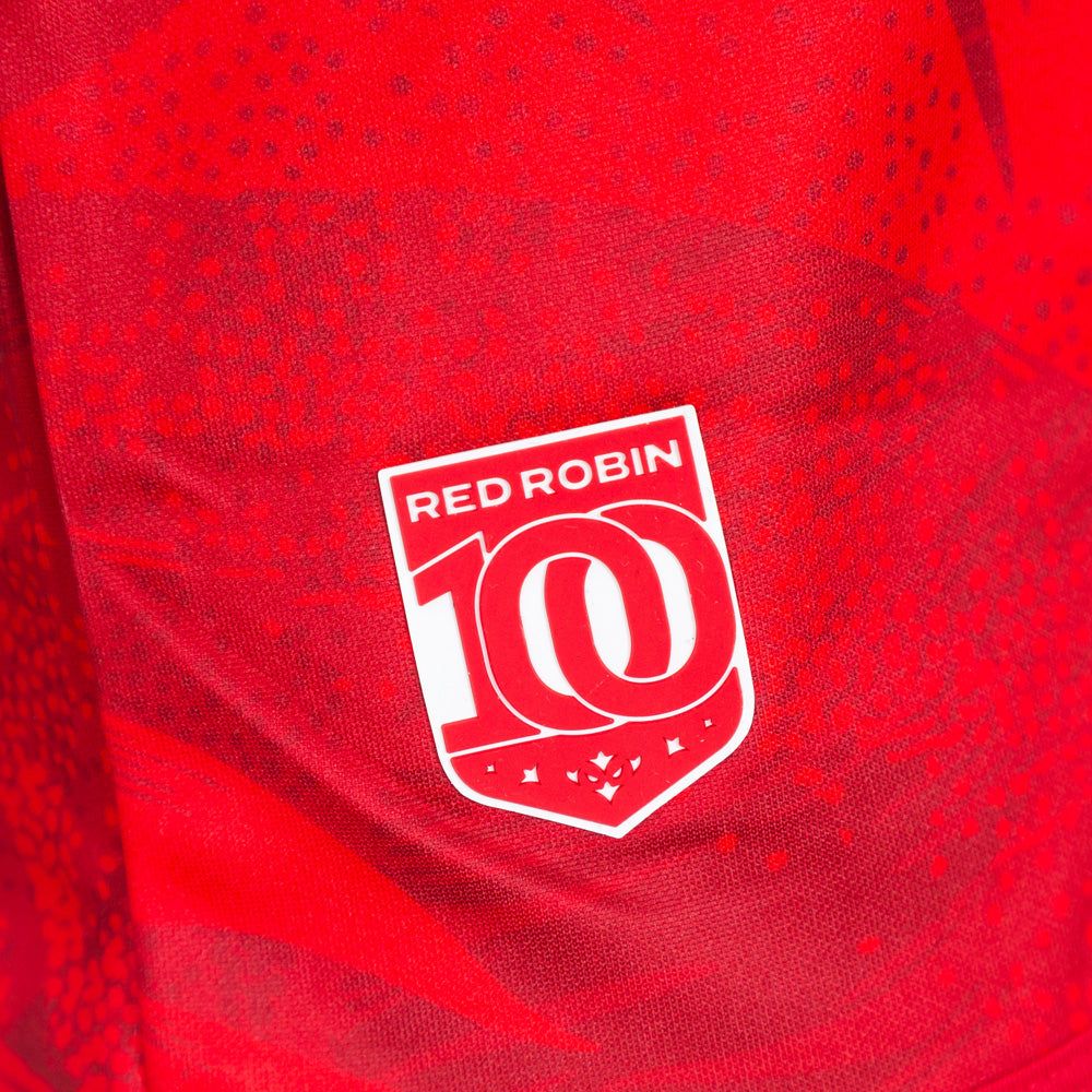 There is a slight elephant in the room with the Red Robin alternate kit, and that is that it is somewhat reminiscent of the England poppy shirt that the national side wore against Australia in the third Ashes test. The thought came to me right away, but it was Steve McNichol (Cas Rugby Shirts) who mentioned it to me directly first. I think it’s obvious that there are some serious similarities between the two, which isn’t necessarily an issue – it just is what it is. I would put my entire shirt collection down on a bet that our shirt was first into production, though, not that it really matters.