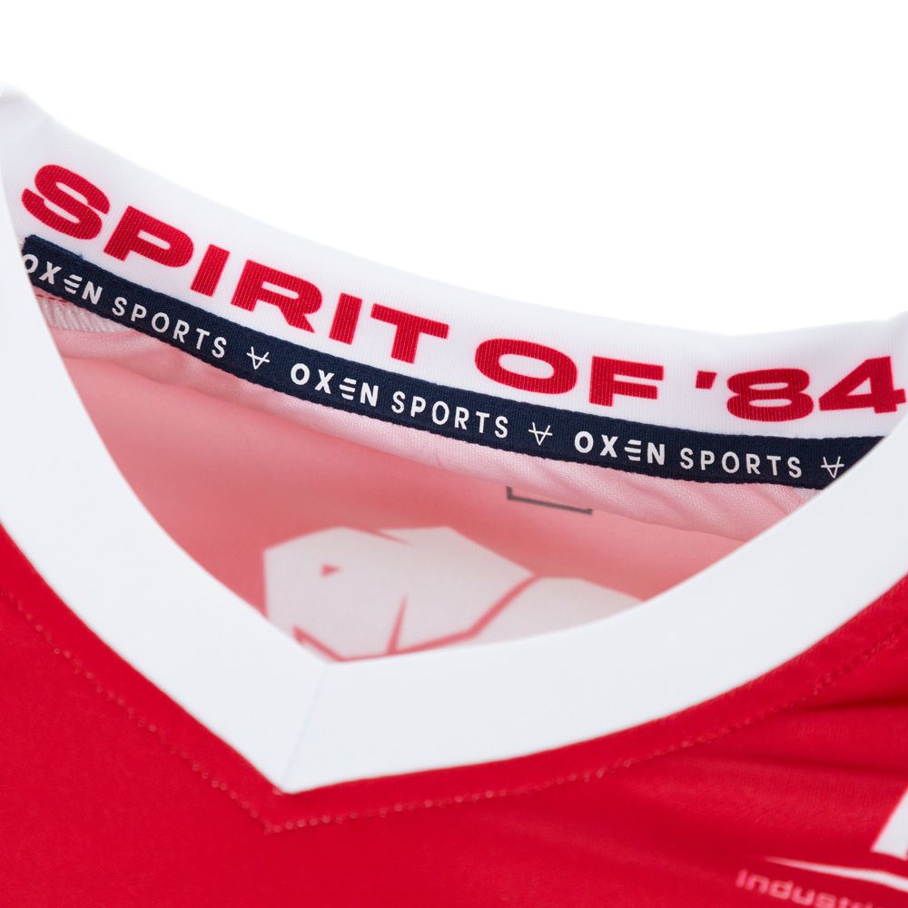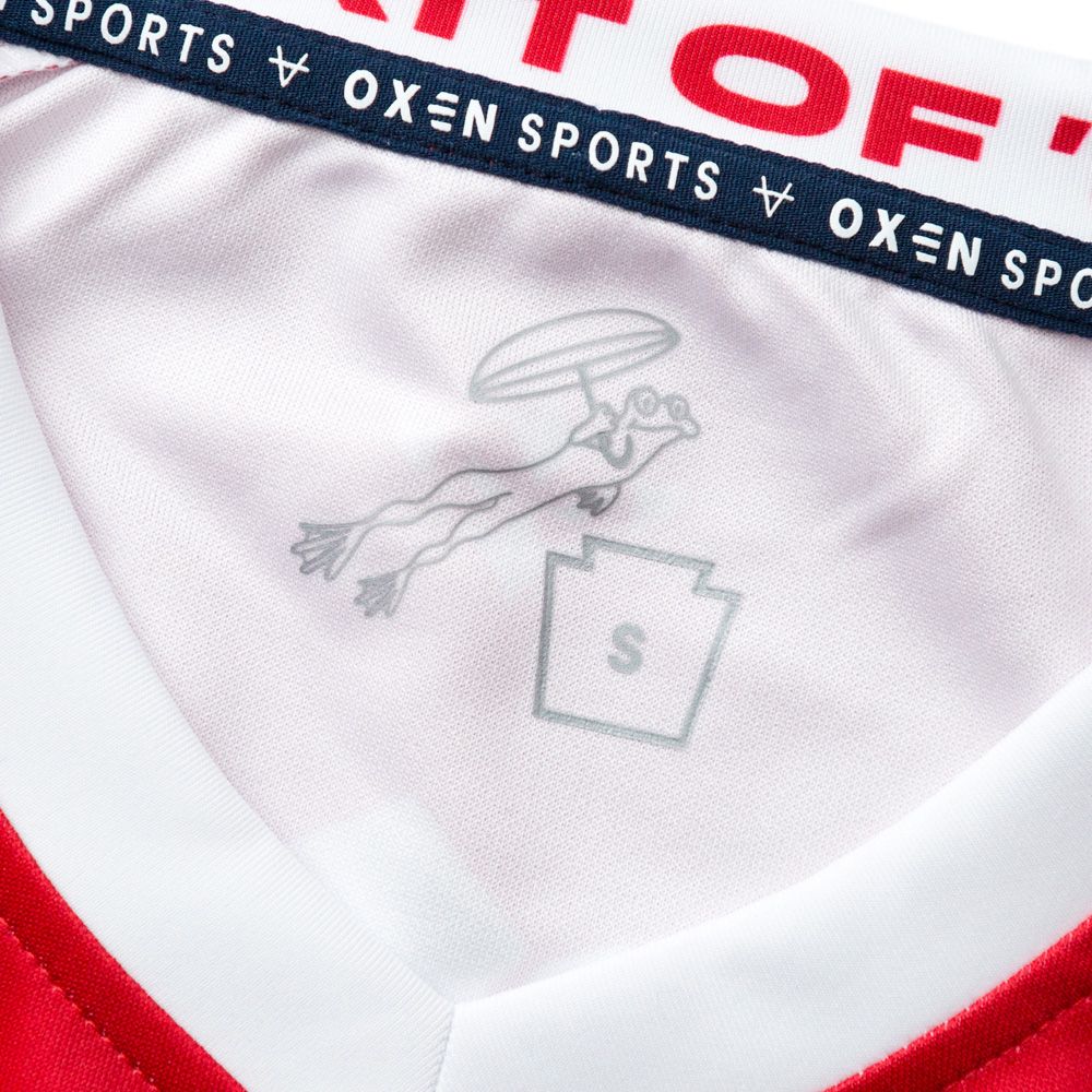 Where do we start… Somehow, this is the first time that we have used the red shirt with a traditional blue band in the OXEN era. We have seen quite a heavy focus on white shirts in recent times and I for one are really glad to see it return. Some of our best-ever shirts are red and blue, and this is one that will go down in history as one of them, in my opinion.
